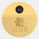 Sticker Rond Papier de chien chinois or Monogramme Anniversaire