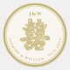 Papier Floral Or Couper Double Bonheur Sur Sticker Mariage Arrière - plan Blanc Chinois. Design élégant à double bonheur dans l'écriture calligraphie traditionnelle, avec un motif de papier floral or ou blanc coupé. Un design mariage asiatique romantique et classe pour le couple chinois moderne. Le double bonheur est un symbole de bonne chance très auspicieux et utilisé dans tous les mariages et célébrations orientaux. Tout le texte est entièrement personnalisable. La couleur arrière - plan peut également être changée en n'importe quelle couleur de votre choix. Vous pouvez facilement ajouter plus de texte / info / détails et/ou photos à ce produit. Il est possible d'entrer votre propre texte chinois personnalisé à partir d'un autre programme ou fichier en utilisant la fonction "copier + coller". Plus de styles de police et de fonctionnalités d'édition disponibles dans la page de personnalisation du produit. Conçu par fat*fa*tin. Facile à customiser avec votre propre texte, photo ou image. Pour des demandes personnalisées, veuillez contacter fat*fa*tin directement. Des frais personnalisés s'appliquent. ・ ・ ・ ・ ・ ・ ・ ・ ・ www.zazzle.com/fatfatin_blue_knot