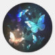 Fabuleux, brillant, bleu et jaune, papillon de nuit sur arrière - plan foncé.