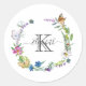 Sticker Rond Papillons Fleurs de calligraphie de script de mono