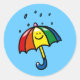 Sticker Rond Parapluie arc-en-ciel et gouttes de pluie