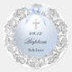 Sticker Rond Parties scintillant Argent Cadre Bleu Bow Baptême