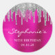 Sticker Rond Parties scintillant argent gouttes rose chaud 50e