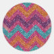 Sticker Rond Parties scintillant Chevron rose violet orange Tur