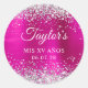 Sticker Rond Parties scintillant d'argent Foil rose chaud Mis X