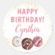 Sticker rond classique de la Parties scintillant d'or Douce Donuts Anniversaire