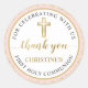 Sticker rond rose Parties scintillant d'or première sainte communion Merci classique