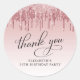 Élégant autocollant pour votre 50e anniversaire de fête de remerciement cartes et faveurs de fête avec "Merci" dans un script de calligraphie chic sur un arrière - plan rose et rose et rose fausse parties scintillant or.