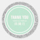 Sticker Rond Parties scintillant en argent et Merci vert à la m