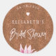 Glam parties scintillant en cuivre moderne et autocollant de douche nuptiale rose vif avec pétales de fleur magnolia couleur rose et un script de typographie manuscrit fantaisiste.++++++++++++ Facile à personnaliser avec le futur nom de mariée et la date de la fête ! +++++++++++++ Convient pour des mariages mariés chic et à l'aquarelle glamour.