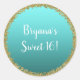 Sticker Rond Parties scintillant en or trempé Turquoise Aqua Gl