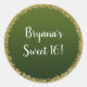 Sticker Rond Parties scintillant en or trempé vert Glam Sparkle