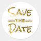 Gold Save the Date Sticker sceaux avec typographie moderne en or glittery dans le style bokeh.