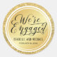 Élégant et sophistiqué autocollant fiançailles or. L'autocollant rond est bordé de parties scintillant dorée. Ensuite, le design intérieur présente des cercles d'or métallique et blanc. We're Engaged est écrit dans une écriture sophistiquée et décorative. Vos noms sont ci-dessous dans une police de caractères magnifiquement chic, puis votre date de fiançailles. Une façon magnifique de sceller les invitations de parties de fiançailles ou les annonces de fiançailles.