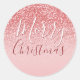 Ces étiquettes cadeaux de Noël présentent un design de parties scintillant dorée imitation rose moderne avec un scénario sombre et moderne "Joyeux Noël".