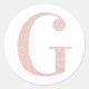 Lettre serif moderne classe G avec un arrière - plan parties scintillant en or rose faux.. Le graphisme de parties scintillant glam a été numériquement effets créés et va imprimer plat comme une photo. Enveloppe monogramme ou autocollants pour votre douche nuptiale.