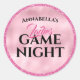 Ces stickers de nuit pour dames glamour sont dotés d'un motif en papier rose brillant. Un cadre de style parties scintillant rose borde l'autocollant. Le mot "dames" est imprimé dans une jolie police de script au-dessus du titre de Game Night.