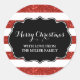 Joyeux autocollants de nom personnalisés de Noël dans festive rouge parties scintillant effet rayures motif avec détails noir et blanc.