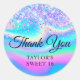 Créez votre propre Sweet 16 anniversaire de fête pour vous remercier stickers. Parties scintillant violet violet brillant sur un arrière - plan art numérique irisé bleu, aqua, rose, magenta et vert faux, irisé. Customisez les styles de police pour créer votre propre design d'autocollant de faveur pour sa célébration spéciale. Une calligraphie classique et élégante associée à une police serif casquette.