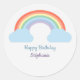 Un autocollant avec un joli arc-en-ciel pastel et ses deux nuages bleus et des textes personnalisables à ajouter à un cadeau d'anniversaire ou un cadeau de remerciement!