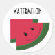 Deux tranches de pastèque rouge juteuse une avec un visage.Une croûte verte vif.