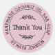 Rustique et pays rose pâle merci autocollant pour vos produits faits main avec verdure.