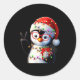 Sticker Rond Peace Sign Hand Penguin Santa Christmas Penguin Pa