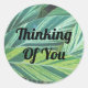 Sticker Rond Pensez à vous Feuilles tropicaux rayés verts
