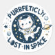 Sticker Rond Perdu dans l'espace astronaute de chat fait main
