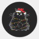 Sticker Rond Père Noël Chat Noir Tangé Dans La Lumière De L'Arb