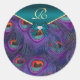 Sticker Rond Phoque cadeau Mariage Plum turquoise Peacock