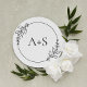 Sticker Rond Phoques d'enveloppes de monogramme noir à feuilles