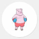 Sticker Rond Pig at Boxing with Boxing gloves