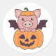 Le pig with halloween pompkin bat costume. Funny animals in pumkins for Halloween. Halloween costume for babies and children who love pigs