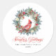 Sticker Rond Pine Holly Wreath Cardinal Noël Classic Round