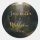 Élégante nature inspiré pinède vert et or script mariage autocollants. Personnalisez-les en ajoutant votre propre nom et vos détails pour en faire votre propre nom. Parfait pour les étiquettes cadeaux de faveur, les scellés d'enveloppe stationnaire, l'envoi postal et plus.