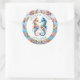 Sticker Rond Plage de sable blanc rose, bleu et or