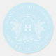 Sticker Rond Plage thème bleu clair Monogramme Mariage autocoll