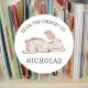 Joli petit autocollant de plaque d'alimentation avec lapin à couchage d'aquarelle et le nom de votre enfant. Autocollant de petit livre rond neutre pour le genre.
