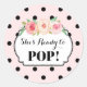 Baby shower elle est prête à pop étiquette de faveur autocollant avec des points rose et noir rousse motif, détails vintages et jolies fleurs d'aquarelle rose. Le pop-corn est parfait.