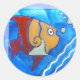 Poisson DooDles peint à la main sur un arrière - plan bleu océan. Les détails DooDles sont peints dans des accents dorés et opalinés verts.