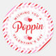 Sticker Rond Poppin Valentine's Day Pink and Red Stripe