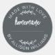 Autocollant fait maison “Made With Love” noir délavé avec une typographie blanche propre et un design de lettrage manuscrit. Parfait pour sceller les produits de boulangerie, les pots de confiture, les biscuits, le pain, les boîtes à tarte, l'emballage des petites entreprises, les faveurs de fête et les cadeaux faits à la main.