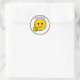 Étiquette récompensée avec un joli visage rond et jaune montrant le signe pouce vers le haut. Il a deux points noirs pour les yeux et un sourire heureux. Au-dessus de sa tête se trouvent les mots "Bon Travail" en lettres violettes. Il s'agit d'un modèle qui vous permet de changer le message à votre place si vous le souhaitez.