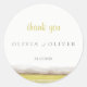 Sticker rond mariage avec paysage de montagne de la nature. Douceur Paysage naturel printemps vert prairies en fleurs. Des silhouettes de montagnes rocheuses brunes, de champs d'herbe et de fleurs blanches de pissenlit. Sticker rond arrière - plan de peinture aquarelle Mariage. Prairies dans la collection Bloom.