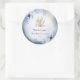 Sticker Rond première communion fleurs d'aquarelle bleue