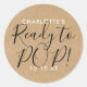 Sticker Rond Prêt à pop Baby shower rustique Kraft Script chic