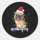 Sticker Rond Pug Christmas Tree Lights Santa Dog Xmas