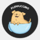 Sticker Rond Pup-puccino Funny Cappuccino Pun Dark BG
