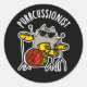 Sticker Rond Purr-cussionniste Funny Drummer Cat Pun Dark BG